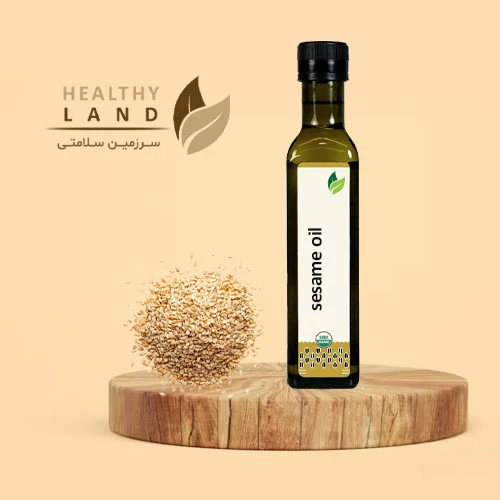 روغن کنجد بکر در بطریهای بهداشتی و مقاوم بستهبندی میشود و دارای سیب سلامت است.